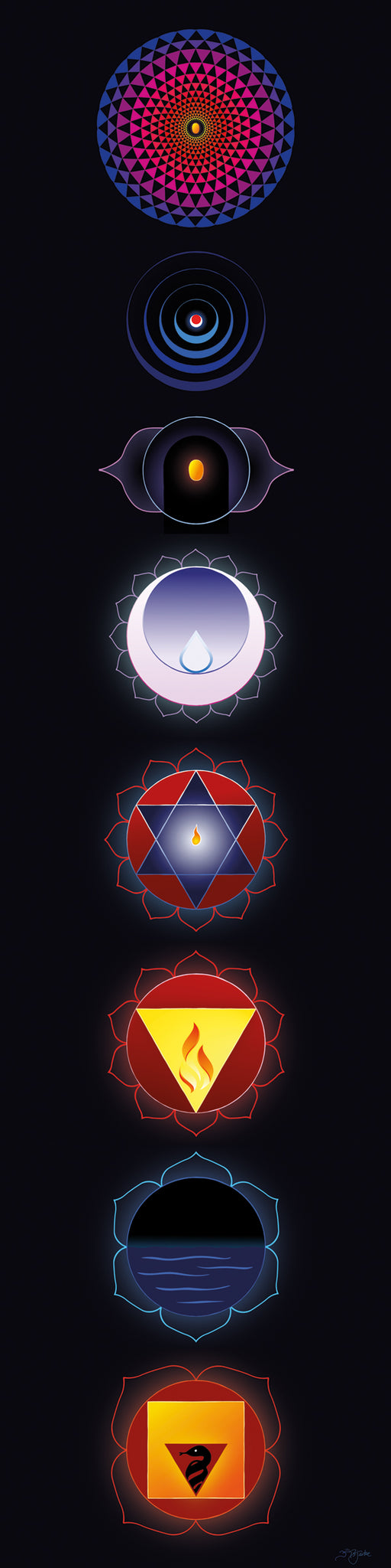 Beautiful chakra illustrations designed by the Norwegian visual artist and yoga teacher Bjarke Jørgensen for the book "Chakra – Esoteric Yoga."